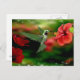 Postcard with a unique hummingbird painting with a hummingbird feeding on nectar!