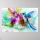 Colorful digital painting of a hummingbird about to snack on a large, vibrant flower