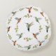 Round pillow featuring hand-painted Rufous and Allen's Hummingbirds.