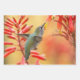 Hummingbird surrounded by red yucca wrapping paper sheets