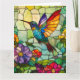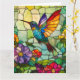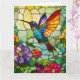 A stunning Tiffany-style stained glass window featuring a vibrant hummingbird in mid-flight amidst colorful flowers. This handcrafted piece showcases intricate details, vivid colors, and classic elegance, making it a perfect centerpiece for any home or space.