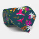 Hummingbird Tropical Flowers and Palms Wedding neck tie. Beautiful deep teal blue tie printed with pink and purple Hummingbirds. With tropical palms and flowers. Ideal for the beach or tropical wedding. Other colours available.