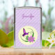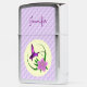 This purple hummingbird is flying near a beautiful pink lily flower. This item is perfect for the bird lover. Personalize it with your name.