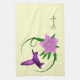 Hummingbird with pink flower towel