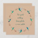 Note card for hummingbird lovers featuring a wreath of North American hummingbirds such as Violet-eared, Broad-billed and Rufous-tailed Hummingbirds on a light terracotta colored background and the quote "Time spent watching hummingbirds is never wasted." All bird images and quote by C. Dobbins.