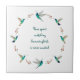 Ceramic tile for hummingbird lovers featuring a wreath of blue hummingbirds such as Violet-eared, Broad-billed and Rufous-tailed Hummingbirds and the quote "Time spent watching hummingbirds is never wasted." Quote and bird images by C. Dobbins.