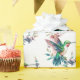 Wrap your birthday party gifts with this wrapping paper, which features watercolor hummingbirds and flowers in a seamless pattern on a white background.