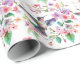 Wrap your birthday party gifts with this wrapping paper, which features watercolor hummingbirds and flowers wreaths in a seamless pattern on a white background.