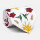 Exotic design with Green hummingbirds, red hibiscus, yellow flowers, golden feathers drawing and custom background color.