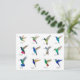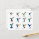 Unique post card featuring several hand-painted species of mostly tropical hummingbirds such as Mango Hummingbirds, Velvet-purple Coronet Hummingbird, blue-throated Starfrontlet, Golden-tailed Sapphire, Dusky Starfrontlet, and Mexican Violet-ear Hummingbirds among others. Images taken from my original watercolor paintings.
