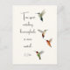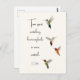 Postcard for hummingbird lovers featuring Rufous hummingbirds, Ruby-throated and Allen's hummingbirds and the sentence "Time spent watching hummingbirds is never wasted".