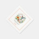 This paper napkin design will entertain your guests at your birthday party celebration. It features a watercolor hummingbird with a tropical floral wreath on a white background, with custom text in gray and orange.