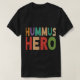 A playful and colorful t-shirt design featuring the text " Hummus Hero" in a bold, cartoonish font. The design is perfect for fans of hummus and anyone who loves a good laugh.