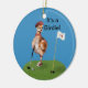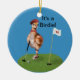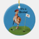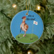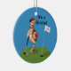 Humorous Bird Playing Golf, Customizable Text Ceramic Ornament