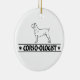 Lightweight, smooth, pure white ornament with nice sheen. Perfect size to be seen from across the room ... and to attract closer inspection! Price was great for ordering enough for the whole family! Clear, bold black design just as requested. Matches the order exactly. Just so nice!