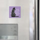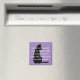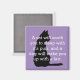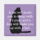 Funny dog / cat comparison magnet done in lavender with a black cat silhouette. White text reads, A cat will sooth you to sleep with it's purr, and a dog will wake you up with a fart. Cute gift idea for any cat fancier.