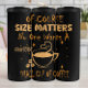 A black humorous coffee-themed design boasting encouragement for coffee lovers to enjoy larger servings. Features gold text and decorative elements, ideal for coffee enthusiasts. OF COURSE SIZE MATTERS NO ONE WANTS A SMALL CUP OF COFFEE