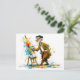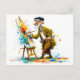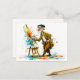 Humorous Elderly Man Reading Illustration Holiday Postcard