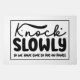 Welcome guests with a chuckle and a sense of humor with our "Knock Slowly, Please Wait for Pants On Doormat." This quirky and entertaining doormat adds a touch of fun to your entryway while letting visitors know they should be patient!