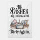 This funny kitchen towel brings charm and humor to your cooking space with a cheerful quote and decorative illustration.