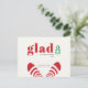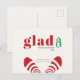 These 4.25" x 5.6" flat holiday or New Year postcards feature the word "glad" in big bold letters with a little hand drawn Christmas tree and funny red and white striped socks with a placeholder for the family name and year. There is a *note...*Decided to switch things up this year.