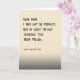 This card features a humorous message aimed at a mom, set in large black all-caps lettering that fills the upper two-thirds of the design. The main line reads, “DEAR MOM, I MAY NOT BE PERFECT, BUT AT LEAST I’M NOT SENDING THIS FROM PRISON,” giving the layout a cheeky, affectionate tone like a teasing hug ❤️. The background is a warm creamy beige with a faint paper-like texture and subtle vertical streaks that add a cozy, lived-in feel. Near the lower portion, a second line of text reads “HAPPY MOTHER’S DAY” in a deeper red tone, standing out as a warmer accent 🌼. The red line is set below the joke, acting like a gentle sign-off that softens the humor into something tender. The overall color palette stays muted and calm, letting the contrast between black and red do most of the visual work. A soft gradient darkens toward the bottom into a muted gray-brown band beneath the red lettering.