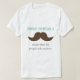 Funny text reads "Proud to wear a moustache. Saves time for people who matters." Keeping a moustache saves lots of time for men from have to shave daily. Hence, the caption is a word play by substituting the word save with shave. And that shave time can be used to spend time with people who matters to you. A humorous T-shirt design with a good message too! Great for guys who wear a moustache!