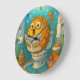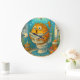 Humorous Pufferfish Reading in an Aquatic-Themed Large Clock