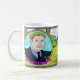 This white ceramic mug contains illustrated likeness of Prince William and his bethrothed Kate with a medevel herald who looks like Marty Feldmann as he is announcing the royal nuptles. On back of scroll is the comment "Well folks, here we go again" meaning that the royal family hasn't had much luck lately with weddings.