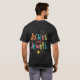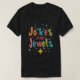 The t-shirt design for "Jokes and Jewels" features a playful and whimsical illustration. A sparkling diamond, adorned with a crown, is depicted laughing heartily. The diamond's laughter lines extend into a necklace of pearls, creating a visually appealing and humorous image. The design combines the concepts of luxury and humor, making it a unique and eye-catching piece