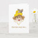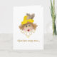 Printed from an original whimsical lady with her jaunty yellow hat, pushing chicken soup to get well. However, there's a promise of chocolate later!