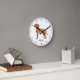Destei's original cartoon illustration of a cute Hungarian Vizsla / Hungarian Pointer breed dog. The clock face is made of simple modern lines. There is also a personalizable text area for a name or other custom text.