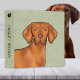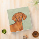 Destei's original cartoon illustration of a cute Hungarian Vizsla / Hungarian Pointer breed dog's head close-up. The background color is green with a decorative texture. The texture can be removed and the background color can be changed to any other color, if so wished. There is also a personalizable text area on the spine together with a black paw print silhouette. This design is ideal for any dog owner to store their pet's veterinary records and other important paper work, for example.
