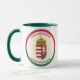 Very pleasant design showing the coat of arms of Hungary within a circle shape made of the national colors.