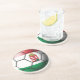 Flag of Hungary embossed across a soccer ball on water absorbent sandstone coasters. Great as a gift for soccer (football) lovers.