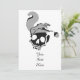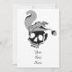 A gray flying squirrel climbing over a tilted black skull. This ugly looking rodent has its claws reached out towards an acorn. The mouth is mostly filled with sharp teeth.