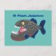 This mean looking, hungry piranha is drawn in fun cartoon style.