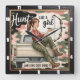 This fun square wall clock features a smiling female hunter in camouflage, confidently sitting on the tailgate of a white pickup truck, holding a bow and arrow. The playful text "Hunt Like a Girl AND Look Cute Doing It" adds a humorous and empowering touch to this unique piece.