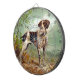 Hunter dog with bird in mouth. Colorful vintage drawing. Retriever with colorful hunter fur