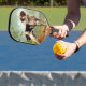 Hunter dog with bird in mouth pickleball paddle