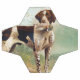 Hunter dog with bird in mouth. Colorful vintage drawing. Retriever with colorful hunter fur
