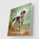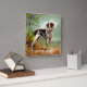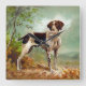 Hunter dog with bird in mouth. Colorful vintage drawing. Retriever with colorful hunter fur