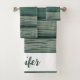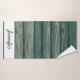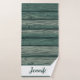 Personalize this hunter green woodgrain bath towel set for your farmhouse and cottage core friends. Rustic dark green wood grain appears on each towel with room to personalize and add a name at the bottom of the large bath towel.