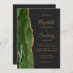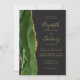Hunter Green Gold Agate Dark QR Code Wedding Invitation