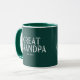 Great Grandpa coffee mug design with established year featuring a white stamped font set on a Hunter Green background. Click customize to edit the background color!. Visit our shop to view this mug in a large assortment of grandfather names.