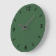 A medium, solid color "Hunter Green" Wall Clock with black numbers. Hunter Green or Hunter's Green is medium dark shade of green. Click on "Customize" to change color or to add a pattern or design. Product Hex Code: #355e3b