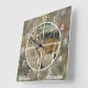 Exhibit a love of hunting with this colorful and decorative clock. A photo of a stag Deer stands in the simulated crosshairs of a rifle scope and the image is placed on a natural "woodsy" style abstract background. Personalize it with names -- First name in the lower left corner and Last name in the lower right corner. The text is easily changed, or removed, by using the template. Or, for other changes (different type font, color, size or placement) select "personalize" then select "customize further." The numbers can also be deleted allowing you to insert your own with a type font of your choosing -- by again selecting the "customize" option. Two other styles of clock faces are also available for this design (both are round). Check out the options on the right. Options also allow you to choose either gray or black clock hands. Great gift.