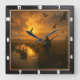 This striking wall clock features a serene lake scene at sunset, with a hunter's silhouette amidst tall marsh grasses. Geese fly overhead and swim on the water, all illuminated by the vibrant orange and yellow hues of the sky. A perfect blend of nature artwork and functional decor, this timepiece embodies a peaceful, rustic aesthetic ideal for any outdoors enthusiast.