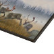 A digital painting of Caribou (Rangifer tarandus) fleeing from hungry wolves emerging from distant mist. Add your own text.