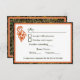 Hunting camo RSVP invitations - the front design features a buck and doe heart with orange line boarder. The designs are white and hunter orange with the text in a hunting green on top of a white and camouflage background. The back design is camouflage with a buck doe heart with a hunter orange. The paper by default is set to basic invitation stock, but can be changed by clicking 'choose your style' then using the Paper drop down box pick one of the options. To change the font, font size, or font color, click the customize button below the Hunting Camo RSVP invitation. Note you may have to customize it if certain wording is too long and so it fits the design better. If your satisfied with the font setup, you can use the personalize feature to change the demonstration information to your personal details. Clicking the small images of the front/back of the card with change to that side so it can be altered. When done check the information you applied is correct and that you have no spelling errors on both sides of the card.